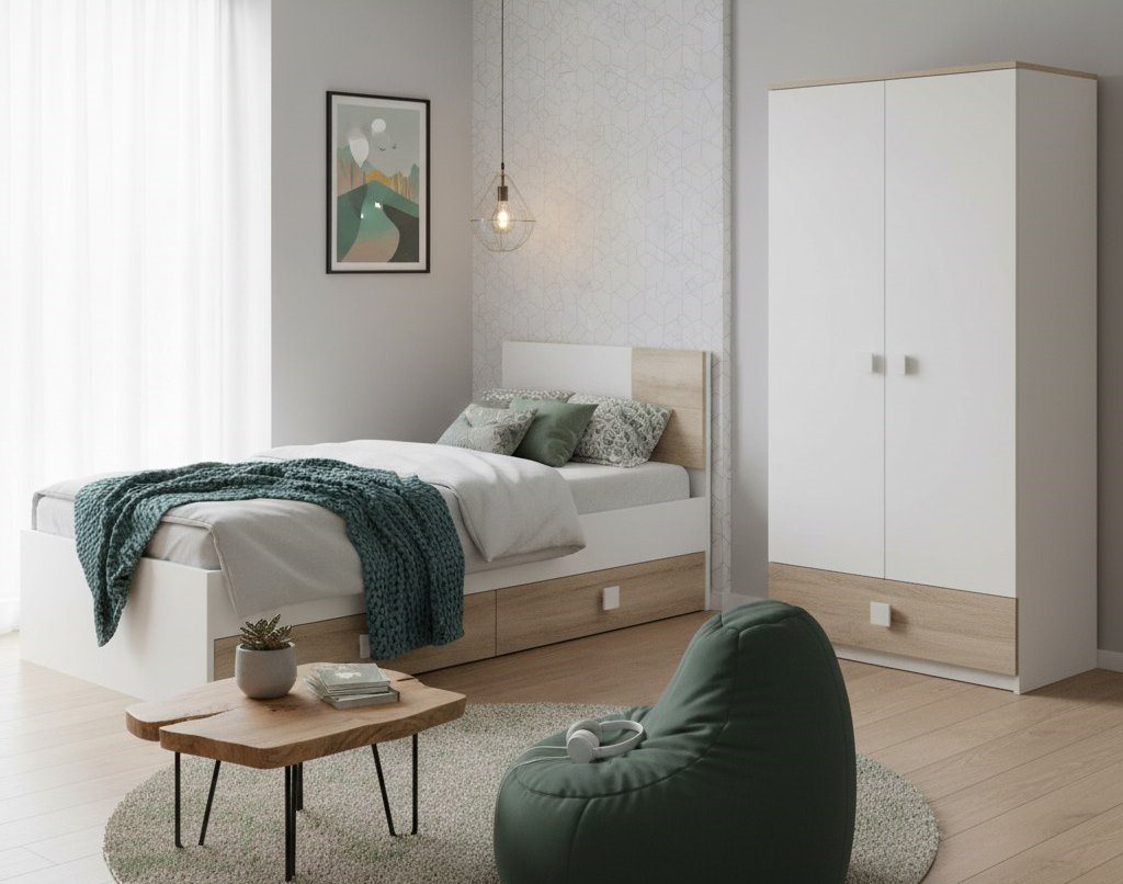 Мебель выполнена из сертифицированного, качественного, экологически чистого ЛДСП Е0,5 в сочетании цветов "дуб каньон + белый".