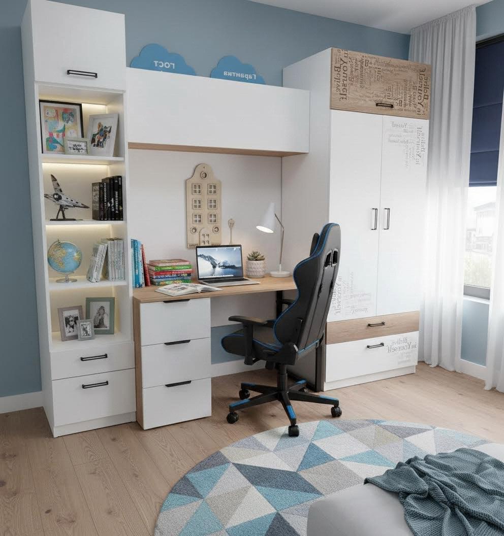 Модульные комнатыДвухъярусные кроватиТрехъярусные кровати Односпальные кроватиКровати-чердакиЧетырехъярусные кровати Шкафы, стеллажи, пеналыКомпьютерные и письменные столыНавесные-настенные полкиКомодыКомплекты мебелиМатрасы