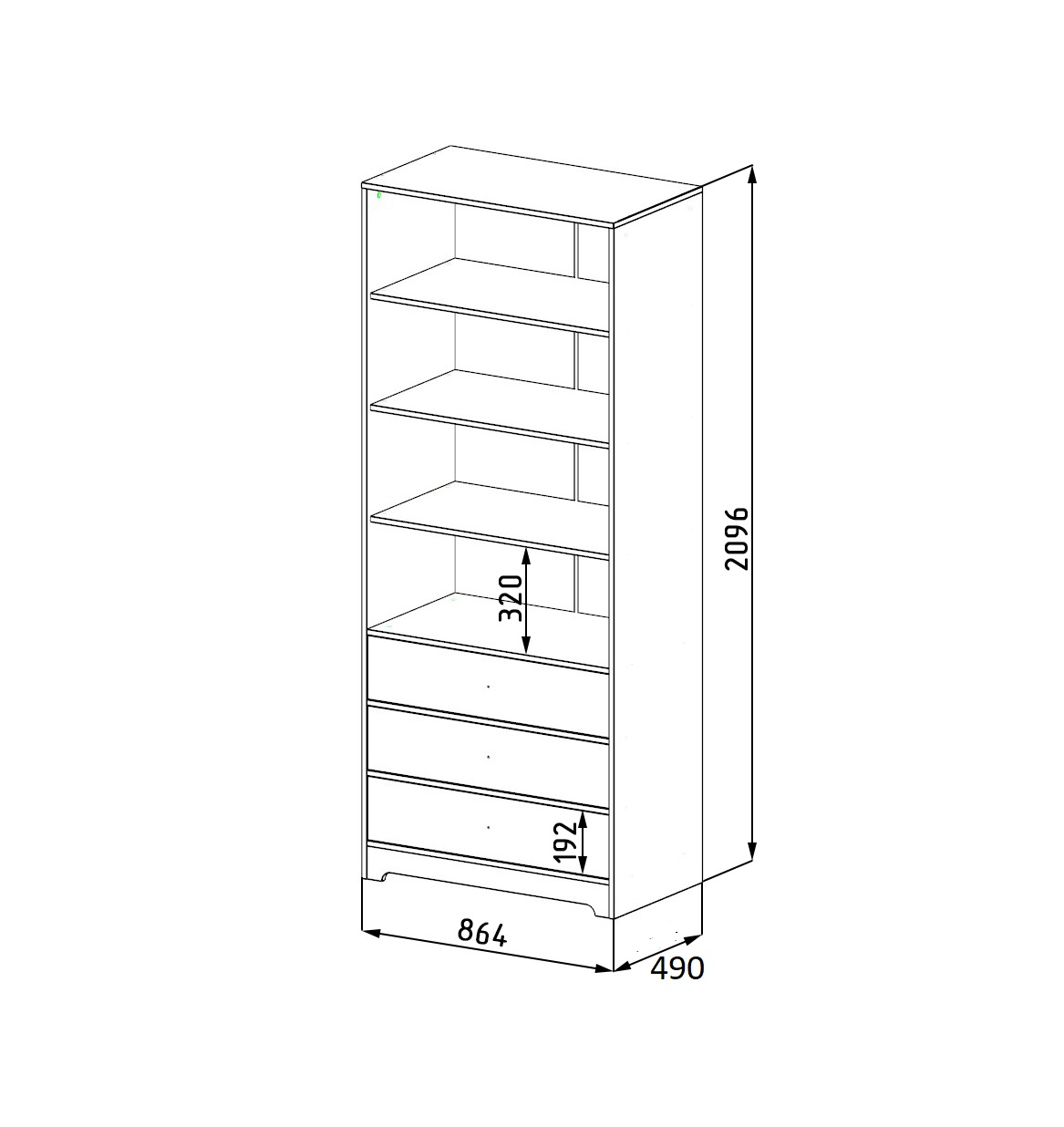 ширина 864, глубина 490, высота 2096 мм