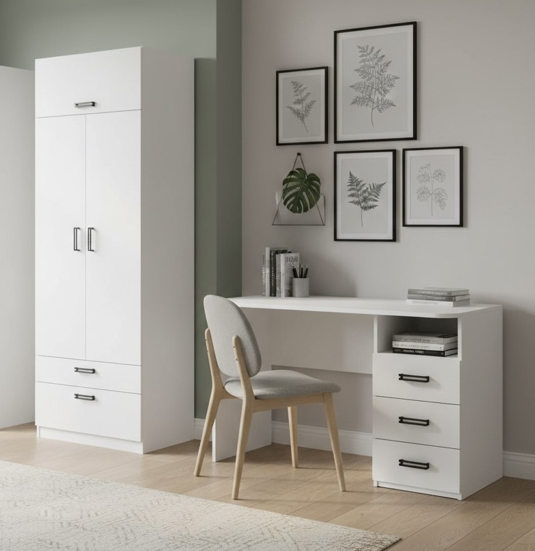 Мебель выполнена из качественного, экологически чистого ЛДСП класса Е0,5 в белом цвете.