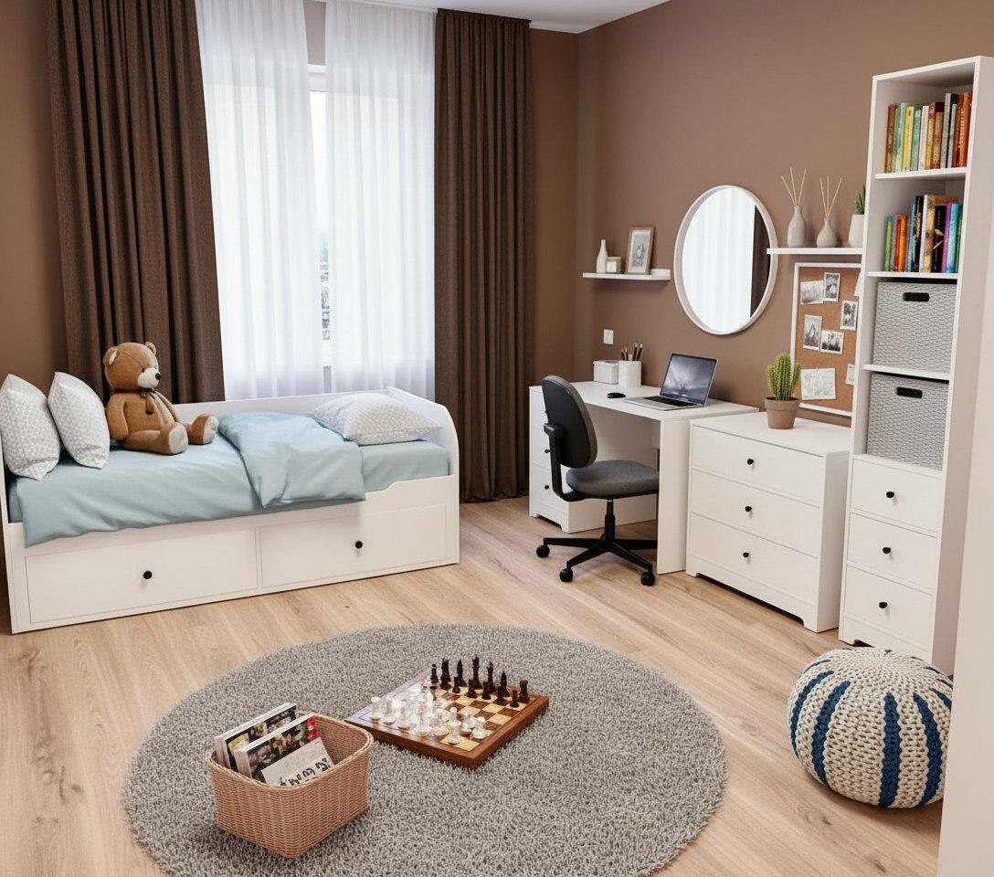 Мебель выполнена из сертифицированного, качественного, экологически чистого ЛДСП класса Е0,5