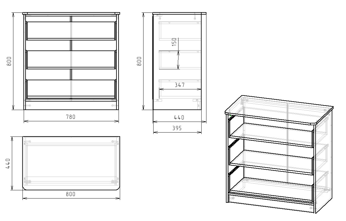 Края комода закруглены и обработаны ударопрочной кромкой ПВХ