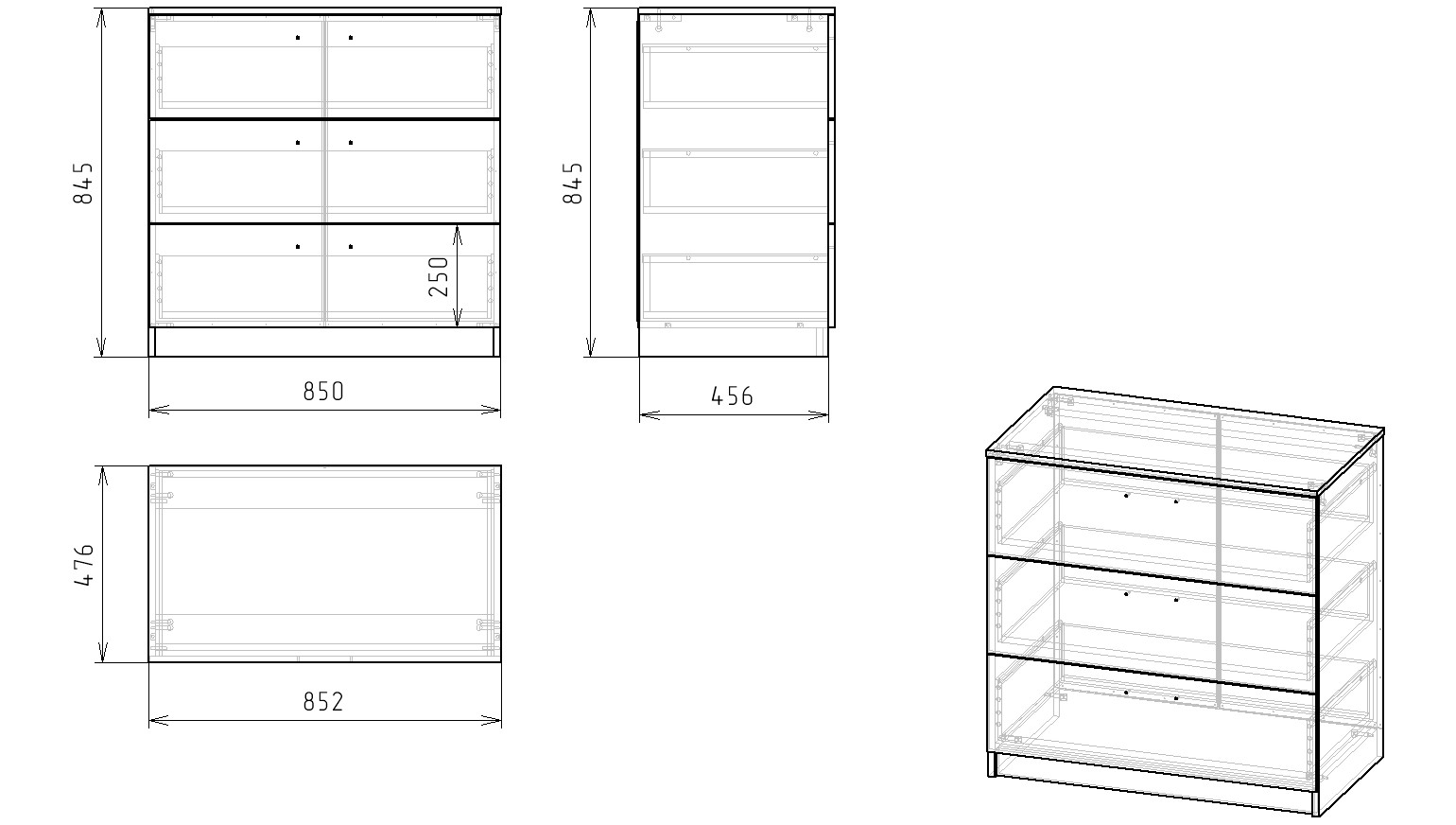 Габариты комода: ширина 852 х высота 845 х глубина 476 мм