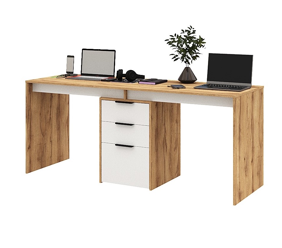 —Стол для 2 детей Тандем 1800 мм (корпус дуб золотистый + фасады белые)