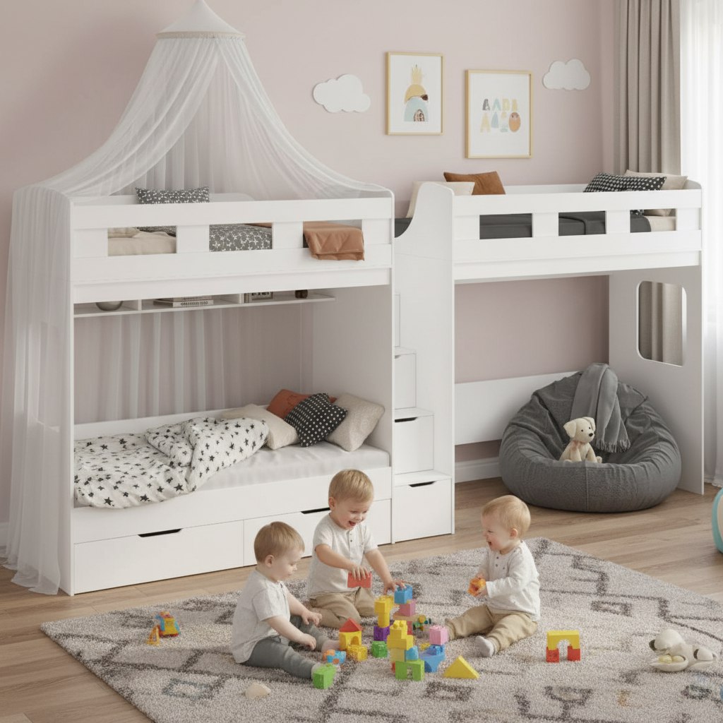 - Максимальная экономия пространства: модель освобождает место для игр и учебы, сохраняя при этом уют и комфорт.