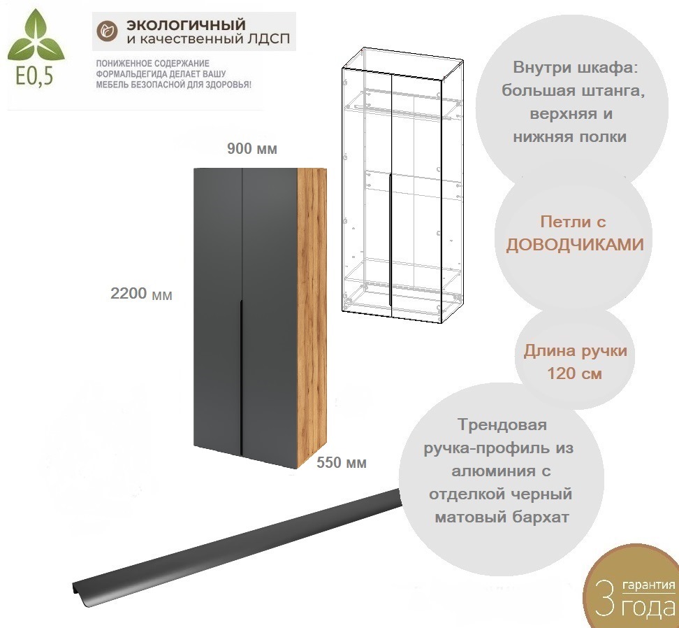 ширина 900 х высота 2200 х глубина 550 мм
