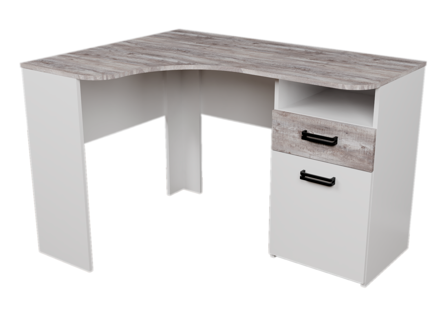 Мебель выполнена из сертифицированного, качественного, экологически чистого ЛДСП класса Е0,5 в сочетании цветов "бетон пайн" + белый.