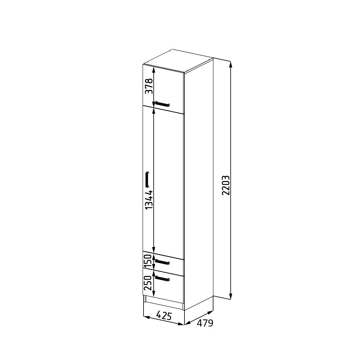 Габариты: ширина 425 х высота 2203 х глубина 479 мм