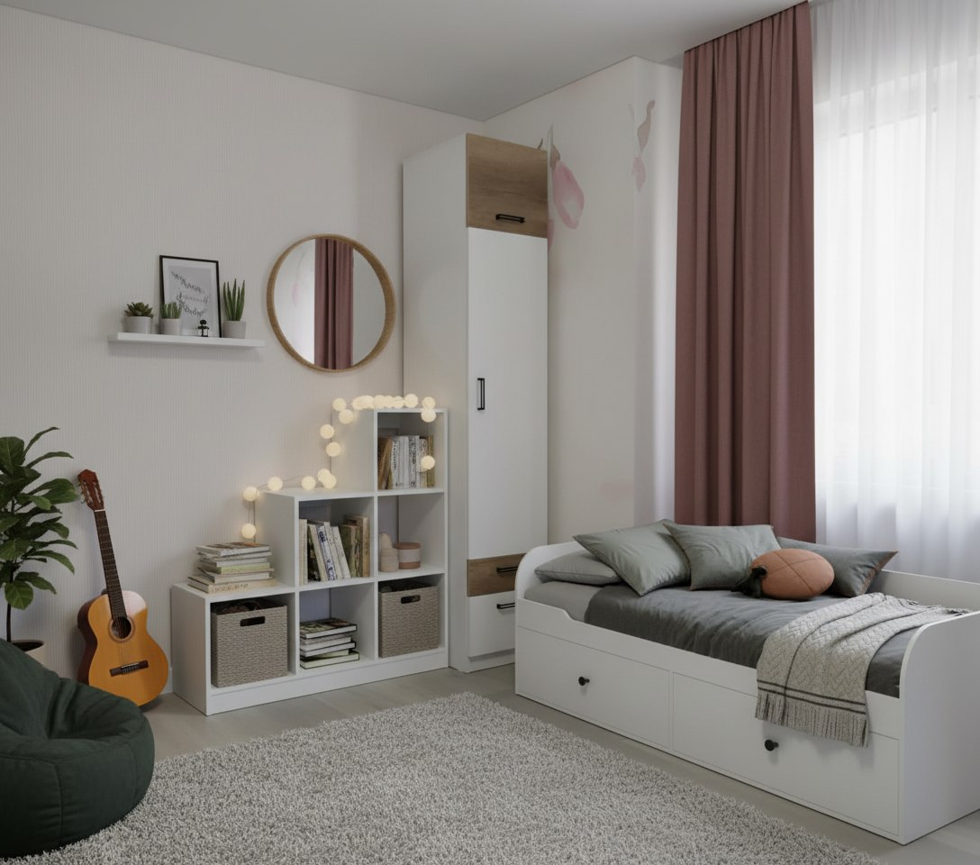 Мебель выполнена из сертифицированного, качественного, экологически чистого ЛДСП Е0.5 в сочетании цветов дуб каньон + белый