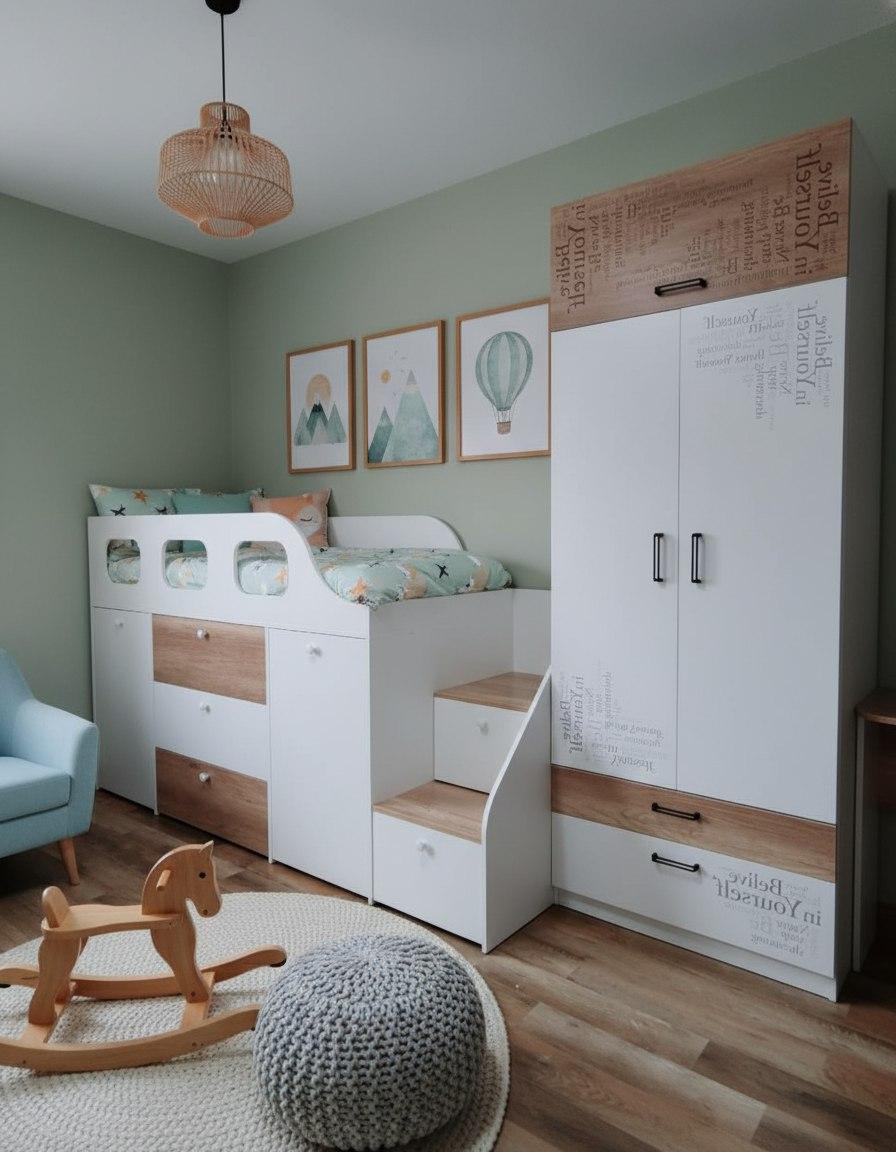 Идеально вписывается в детскую комнату, шкаф очень практичный и вместительный, по своим габаритам отлично подходит и для небольших комнат.