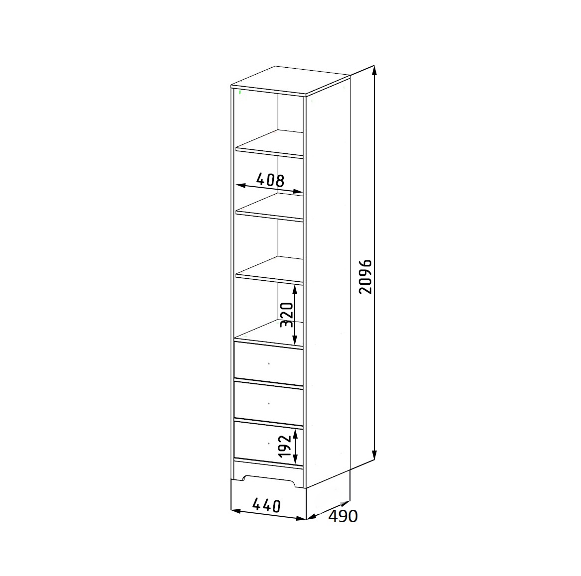 ширина 440, глубина 490, высота 2096 мм
