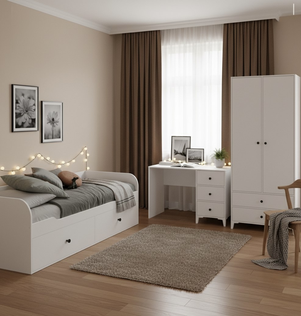 Кровать Норд 190х90 + стол + шкаф коллекции Вест от Династия Kids