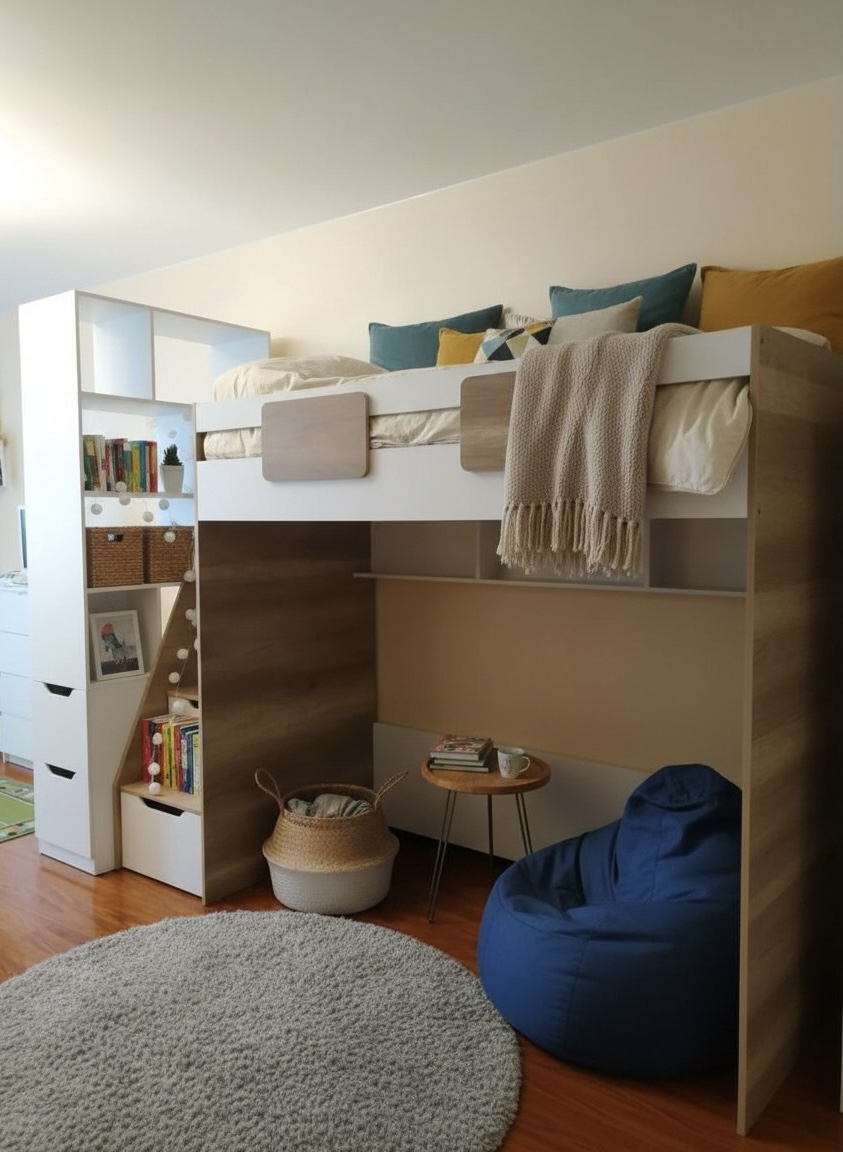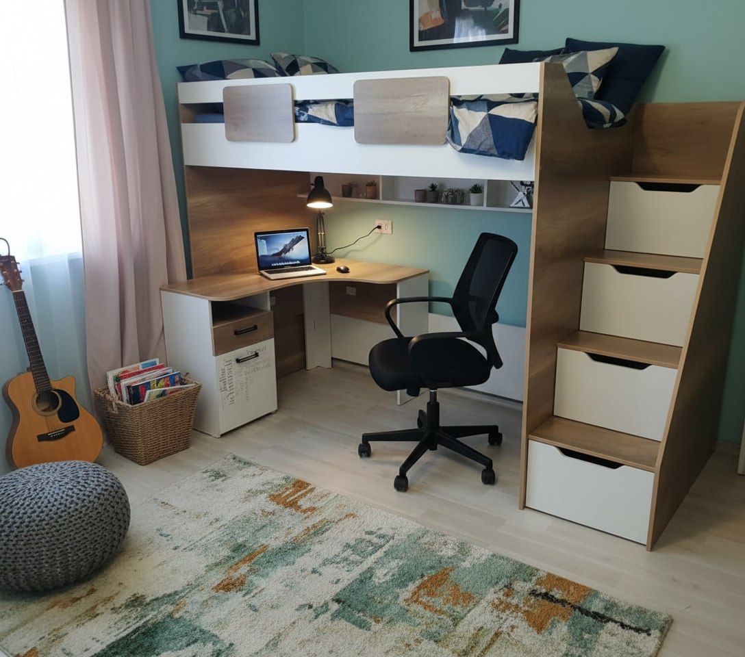 Вместо них - цельный и прочный настил из ЛДСП, который выдерживает сверхвысокую нагрузку и позволяет расположиться даже взрослому с ребенком.