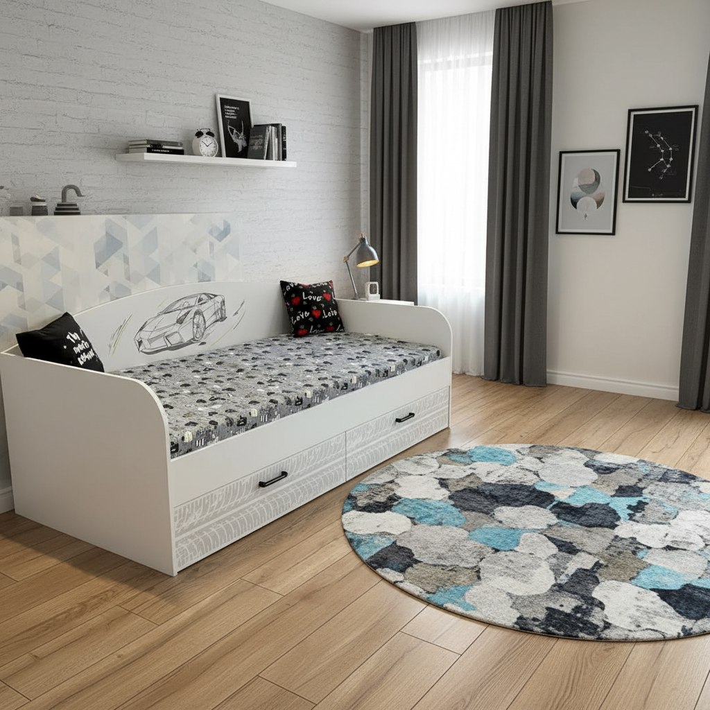 Мебель выполнена из сертифицированного, качественного, экологически чистого ЛДСП класса Е0,5 в белом цвете с дизайнерским принтом.