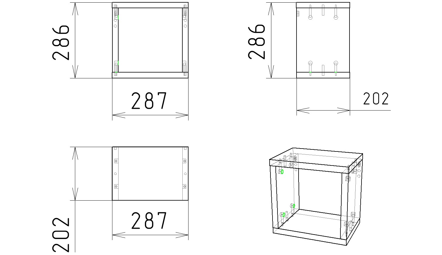 Габариты полки Куб-2: ширина 287, глубина 202, высота 286 мм