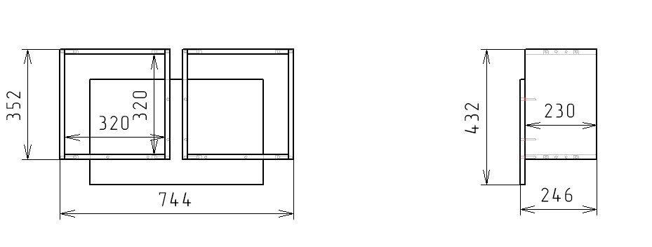 Габариты: ширина 744, глубина 246, высота 432 мм
