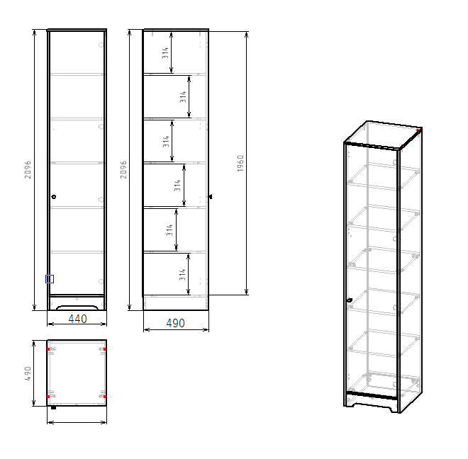 Габариты пенала: ширина 440, глубина 490, высота 2096 мм