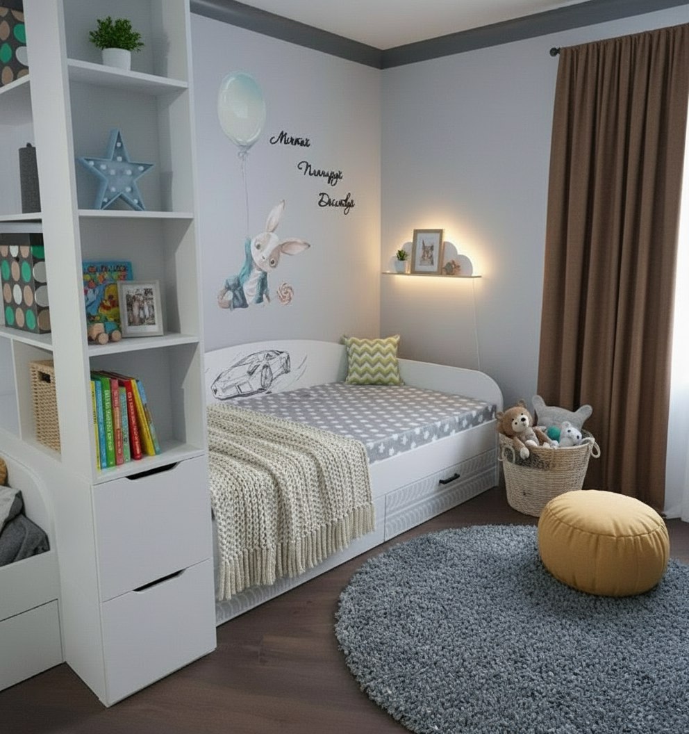 <comment>Обновили детскую. Стеллаж отдельная любовь. Очень удобный. Кроватка тоже шикарная. Спасибо! </comment>