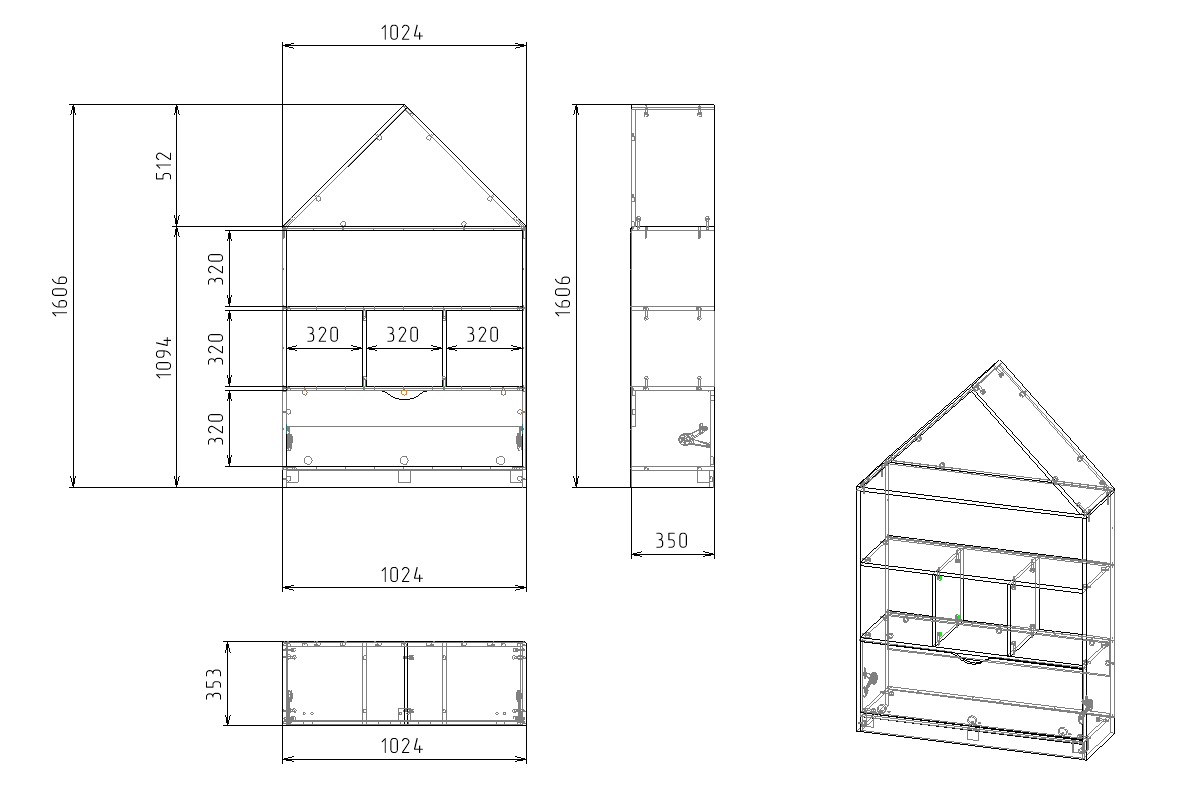 Габариты: высота 1606, глубина 350, ширина 1024 мм