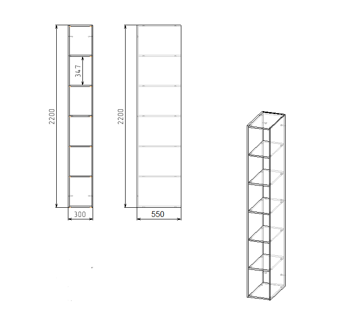 Внутри шкафа расположены две штанги, верхняя и нижняя полки.
