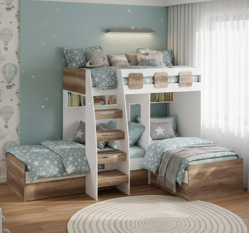 Трехъярусные кровати от «Династия Kids» предлагают много преимуществ для семей с несколькими детьми или для оптимизации пространства в детской комнате. Модели позволяют разместить троих детей на площади, обычно занимаемой одной кроватью, что идеально для небольших комнат или семей, желающих максимально эффективно использовать пространство.«Династия» и «Биг» оборудованы удобными лестницами и защитными бортиками для безопасности каждого яруса. Конструкция кроватей позволяет легко получить доступ к каждому спальному месту, что облегчает использование даже для самых маленьких. Кроме того, продуманный дизайн включает встроенные ящики или полки для хранения, что помогает поддерживать порядок в комнате и экономить место для хранения игрушек, книг, одежды.