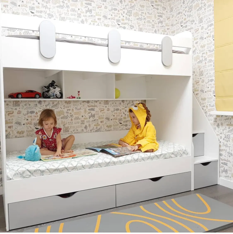 Чаще всего на верхнем ярусе спит ребенок постарше, а внизу младший.